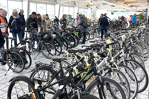 Schon am Vortag liefen die Vorbereitungen auf Hochtouren. Engagierte Helferinnen und Helfer nahmen die Fahrräder entgegen, zeichneten sie aus, platzierten sie zu Verkauf und bauten die Informationsstände auf. Am Veranstaltungstag herrschte dann ab 9 Uhr reger Betrieb. Dank des freundlichen Wetters und einer hervorragenden Organisation war die Resonanz überwältigend: Über 80 Fahrräder, 15 Kinderräder, 15 E-Bikes sowie Zubehörteile standen zum Verkauf bereit. Über die Hälfte der angebotenen Räder fand glückliche neue Besitzer.