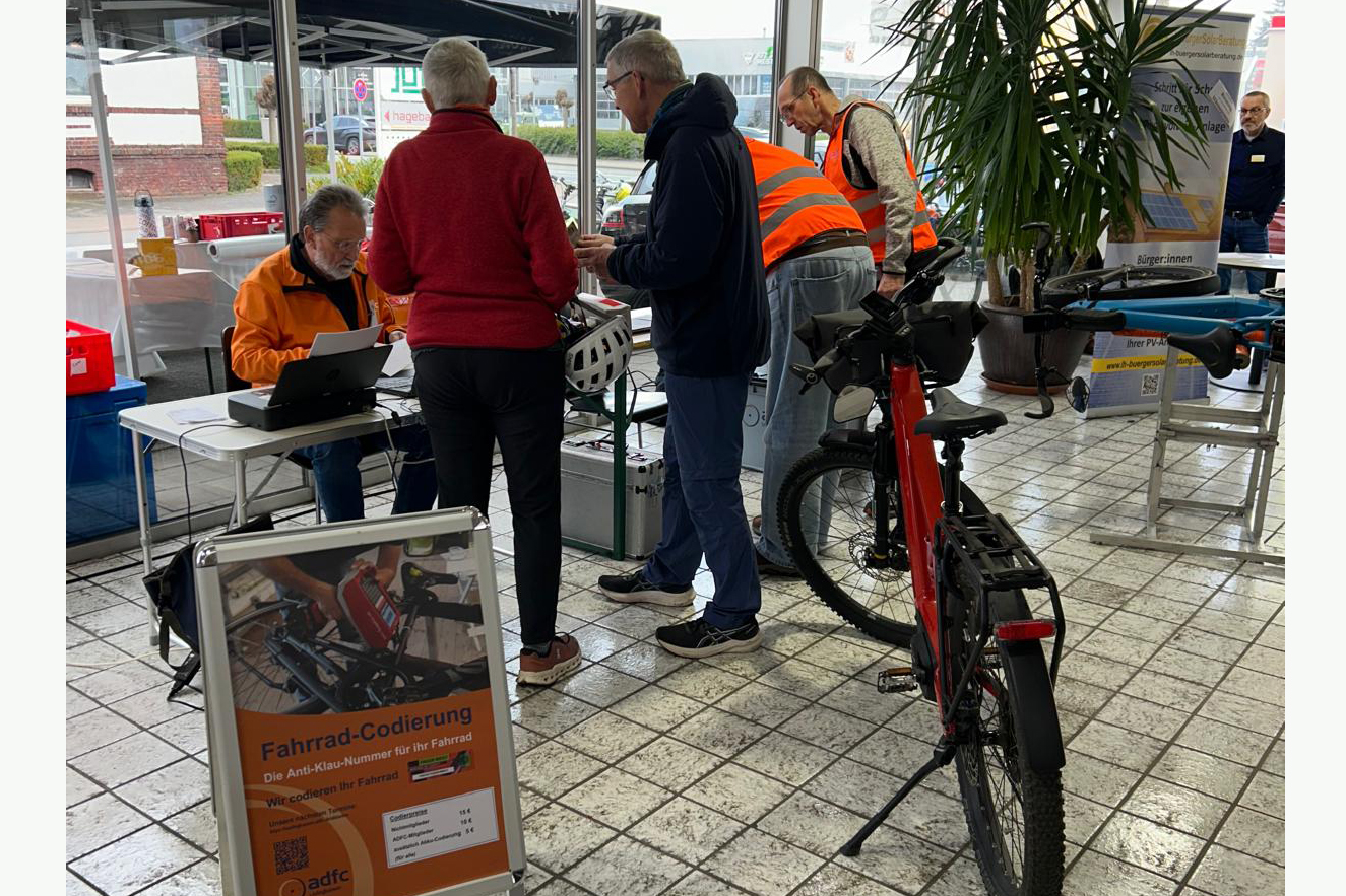 Die Möglichkeit zur Codierung von Fahrrädern wurde von vielen Besuchern genutzt. An diesem Tag wurden rund 20 Fahrräder codiert und damit besser vor Diebstahl geschützt. Einige Besucher entschieden sich als neue Mitglieder spontan für den Beitritt in den ADFC.